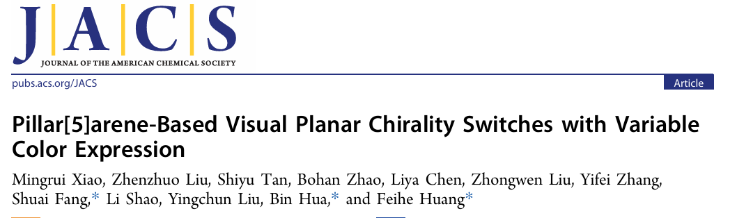 浙江大学黄飞鹤团队JACS:具有颜色响应功能的柱[5]芳烃手性分子开关