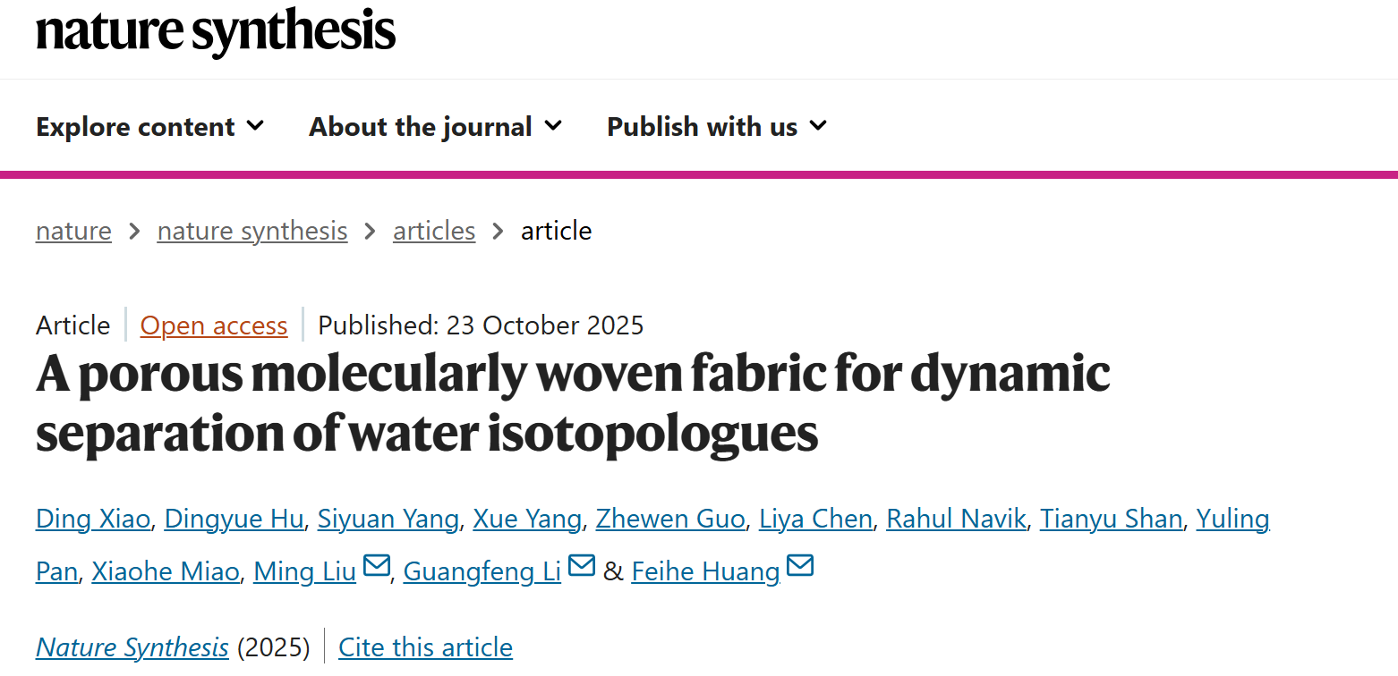 黄飞鹤/李光锋/肖丁团队和刘明团队Nature Synthesis:H2O和D2O的动态精准分离